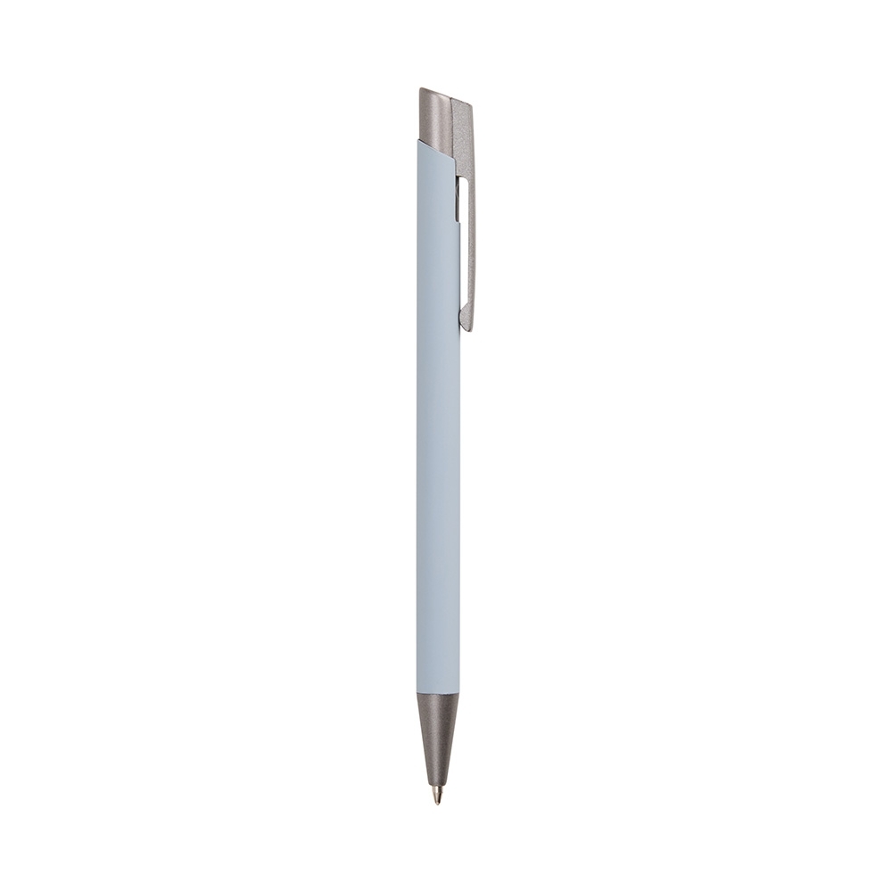 Caneta esferográfica de carga azul de 1.0mm, acionamento por clique e construção leve totalmente em metal, o que possibilita uma pegada suave para uma escrita mais precisa.