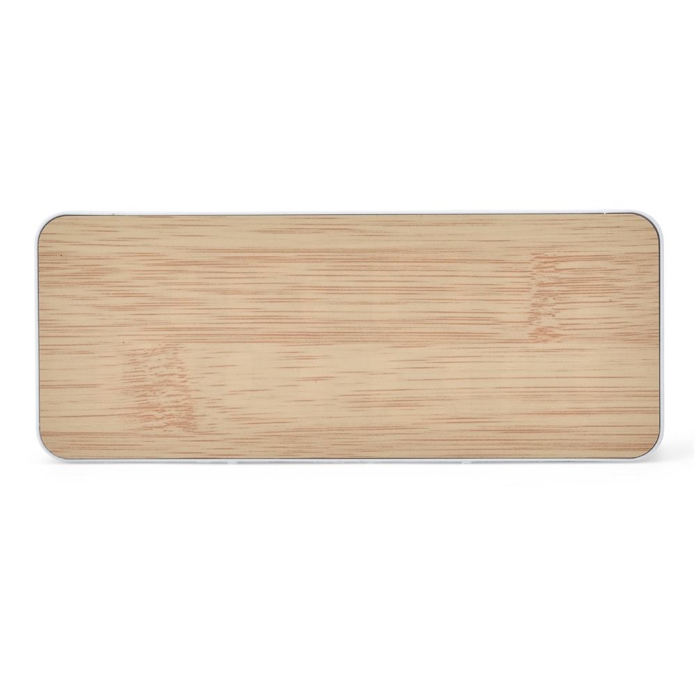 Este relógio despertador de bambu e plástico com painel de LED faz a elegante união entre tecnologia aplicada ao design requintado tornar-se realidade em um único aparelho. Através dele é possível visualizar a hora certa e outras informações, como data e temperatura ambiente. Apresenta opção de programação de alarme, oferecendo a possibilidade de ajustar a frequência sonora e dos dias de acionamento, tornando-o um excelente aliado para planejar uma rotina. Também é possível selecionar, em até 3 níveis diferentes, a luminosidade das informações do display. Além disso, o relógio despertador pode ser ligado através de 1 pilha AAA (não acompanham o produto) ou via cabo USB DC de 5V que acompanha o dispositivo.