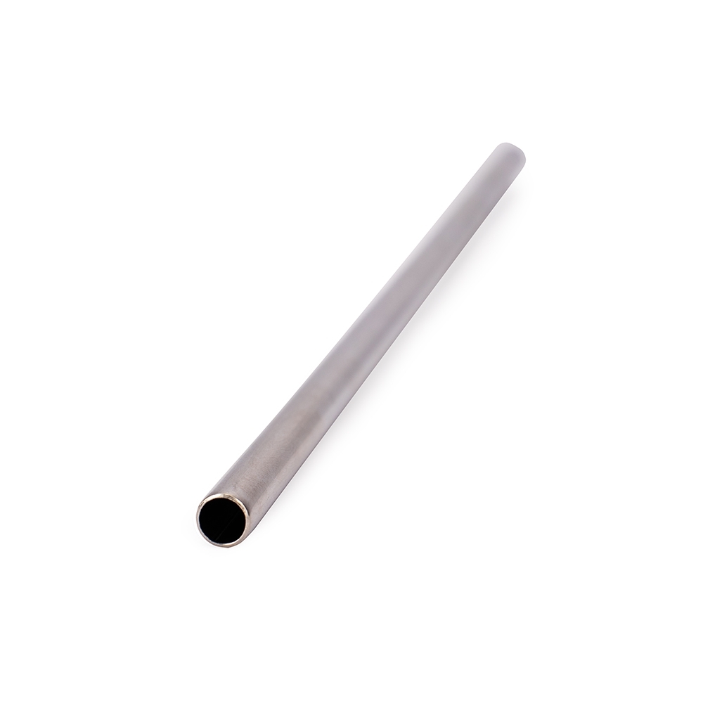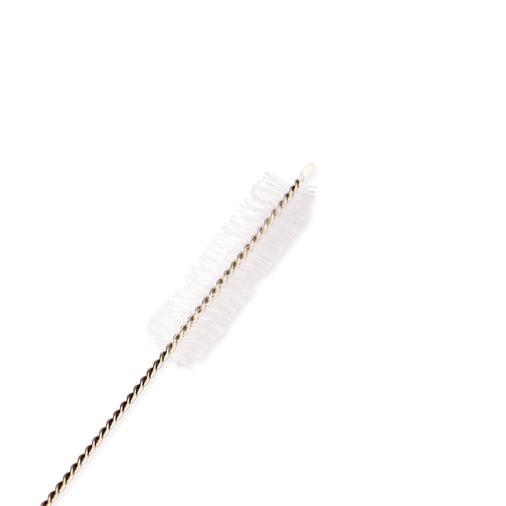 Kit com canudo reto em aço inox e escova de limpeza reutilizável em inox com ponteira plástica e cerdas sintéticas.