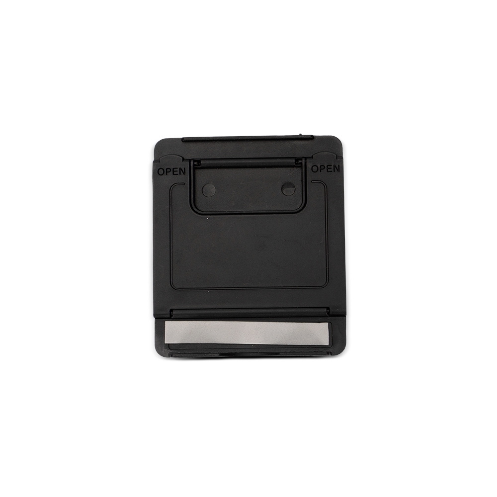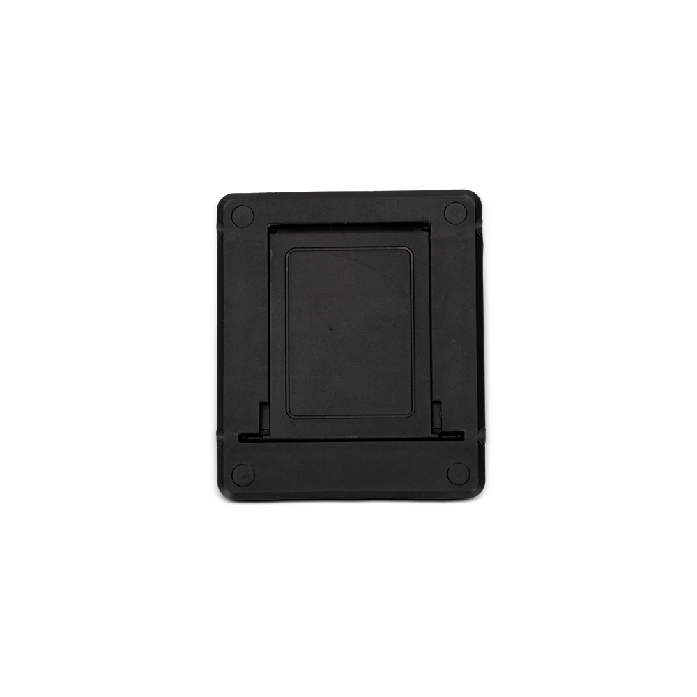 Suporte para celular compacto feito em plástico. Ideal para superfícies planas, possui ajuste de inclinação de até 75 graus. Conta também com almofada emborrachada antiderrapante para oferecer um apoio mais estável ao aparelho durante o uso.