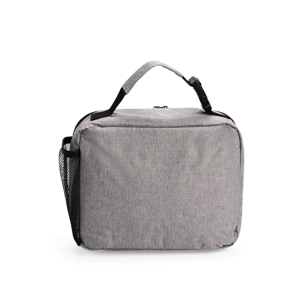 Bolsa térmica em poliéster impermeável com fechamento em zíper e capacidade de até 4 litros. Possui revestimento térmico interno em PEVA atóxico e compartimento em tela de nylon. Apresenta bolso frontal com zíper e bolso telado com elástico, além de alça de mão com engate rápido.